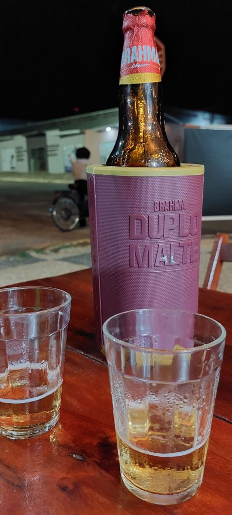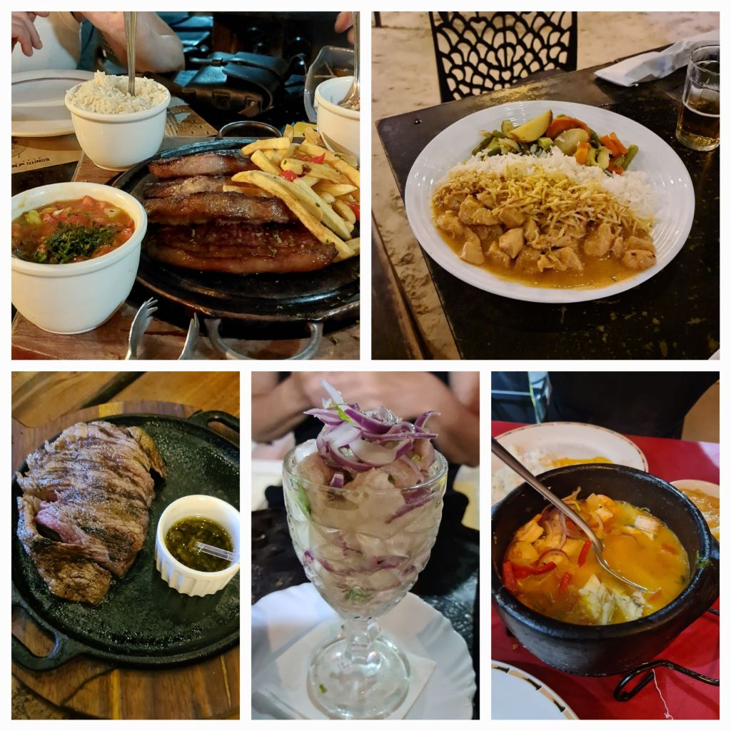 Het eten viel ons goed mee, we hadden ons ingesteld op de wekenlange vlees, aardappelen, maïs routine zoals we die in Colombia en Bolivia kregen, maar dat is hier ook wat kleurrijker. Standaard is wel veel vlees of vis, grote stukken ook, bakje bonen, rijst en friet, geen groente (tenzij je het bakje bonen meetelt), maar kon je er altijd “voor peanuts” bijbestellen. Maar ook visstoof (moqueca)en veel Italiaans en sushi.