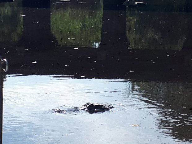 Wel zien we 2 manatees….oftewel lamantijnen, behorende tot de zeekoeien (even goed zoeken op de foto is nodig), naar het schijnt komen deze veel minder vaak voor en hebben we veel geluk, helaas zijn ze net wat minder schattig dan dolfijntjes: