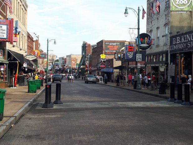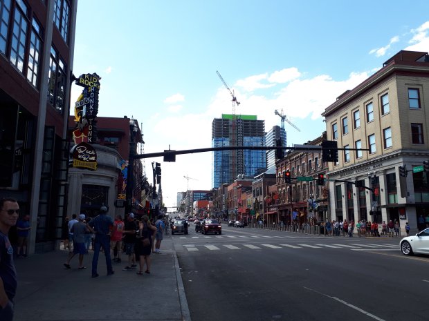 En ja hoor waar we Bourbon street in Nola hadden, Beale street in Memphis is er hier Broadway. De live muziek schalt oorverdovend uit iedere bar op Broadway en enkele zatte toeristen zitten al meeblerrend aan de toog. Maar het is dan ook nog maar 10:30: