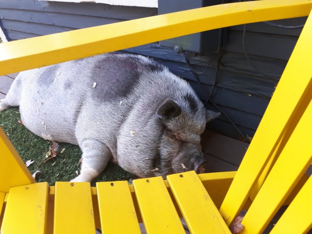 Het Airbnb huisje, is super, veel ruimte, lieve gastvrouw, 2 hondjes, 2 kippen en als klap op de vuurpijl; Herbert “the Wonder pig”, hij slaapt vooral en maakt super schattige geluidjes, Raimon kan nog wat van Herbert zijn snurkjes leren. Ook kan hij truckjes, als zitten, rondjes draaien en waggelen als een eendje, wat wil je nog meer dan dit knappe, ronde zwaargewicht: