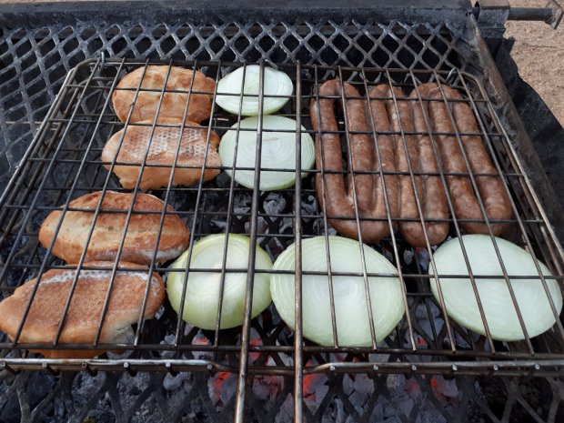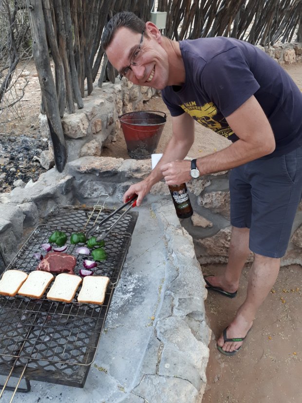 Als kers op de taart mochten we ook nog in dit park ons tent opzetten, de campingplaatsen waren door het gele park verdeeld, dus geen buren, maar doodse stilte, veel vogeltjes en wat knaagdieren om ons heen. Geen stroom of water maar back to basic. Fred & Wilma Flinstone for a day! Geen grote stukken vlees maar boerewors van de braai.
