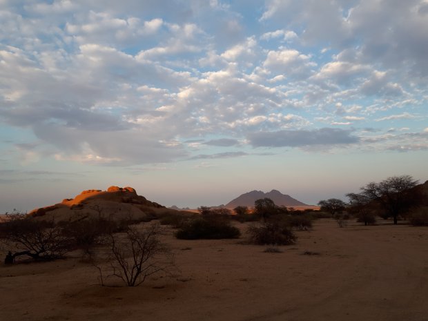 De hoogste berg in Namibië is 1728 meter en loopt een beetje spits op, vandaar de naam de Spitzkoppe, al doet hij mij wat stomp aan: