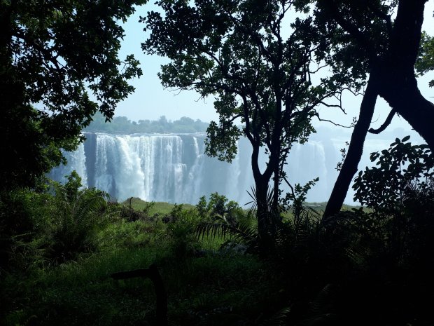 De Victoriawatervallen, oftewel Vic falls liggen niet ver van onze eerste stop in Botswana, net over de grens in Zambia en Zimbabwe.