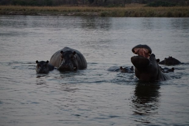 We slapen op 2 verschillende te gekke campings direct aan het water, dus ook direct uitzicht op de dikbillige hippo’s met kids. En ook enorm veel kabaal in de nacht van deze lieverdjes, een boerende chinees is er niks bij. Zo leuk de wildernis!