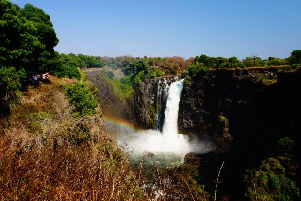 Wil je hem van alle kanten zien dan zou je beiden landen moeten bezoeken, wat ook 2 x visa kosten betekend. Oktober is het einde van het droge seizoen, dus de hoeveelheid water dat naar onder stort is nu stukken minder dan vlak na het regenseizoen. In Zambia zou in dit seizoen niet veel te zien zijn, dus kozen we voor Zimbabwe waar ook de hoofd waterval ligt.