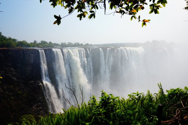 De Vic falls zijn de breedste watervallen van Afrika. En samen met Niagara en Iguazu de indrukwekkendste van de wereld. Ze vormen een gordijntje van 1708 meter breed en hebben een maximale hoogte van 128 meter. Per minuut valt er 500 miljoen liter water over de rotswand.